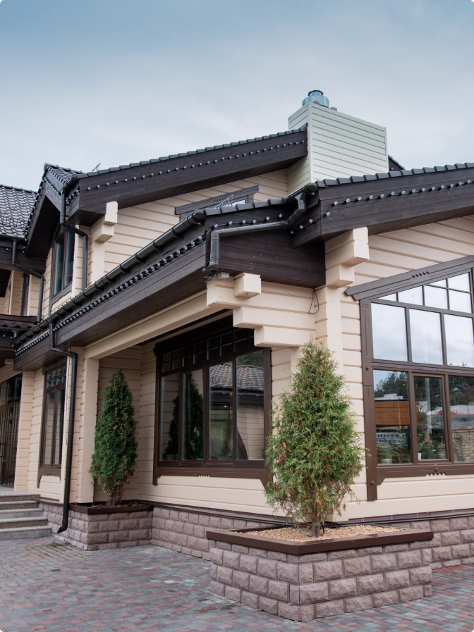 В дизайне используются элитные материалы: паркетная доска, натуральный камень, дерево экзотических пород и др.